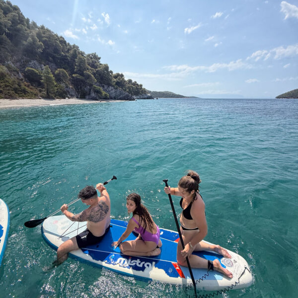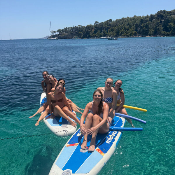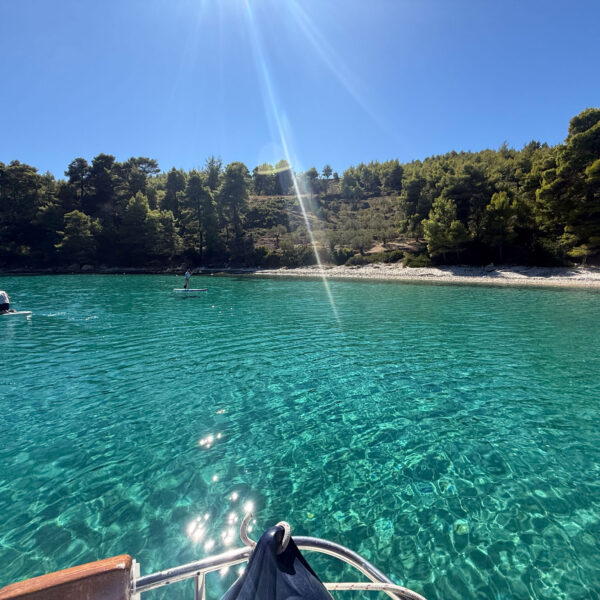 You can feel that they love the ocean and what they are doing. They took us to some amazing beaches to swim and see the wonderful clear waters of the Sprorades. We had lovely conversations and they told us a lot about Skopelos and Alonissos. The boat is very clean and well equipped. We all loved the amazing food Alexandra made for us. It was so much fun going out on the SUP boards and jumping into the water from the boat.