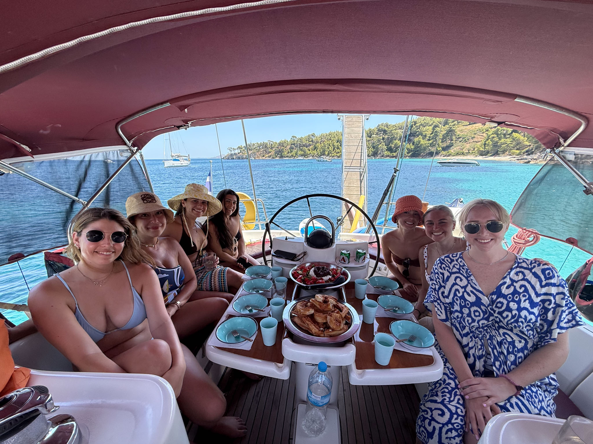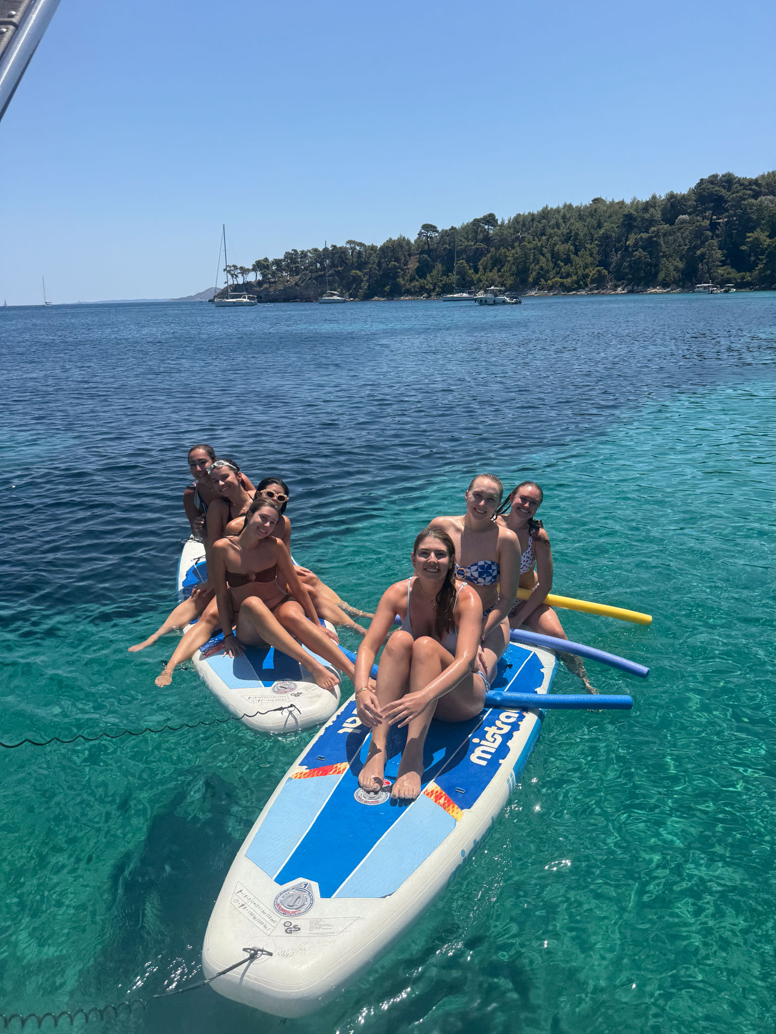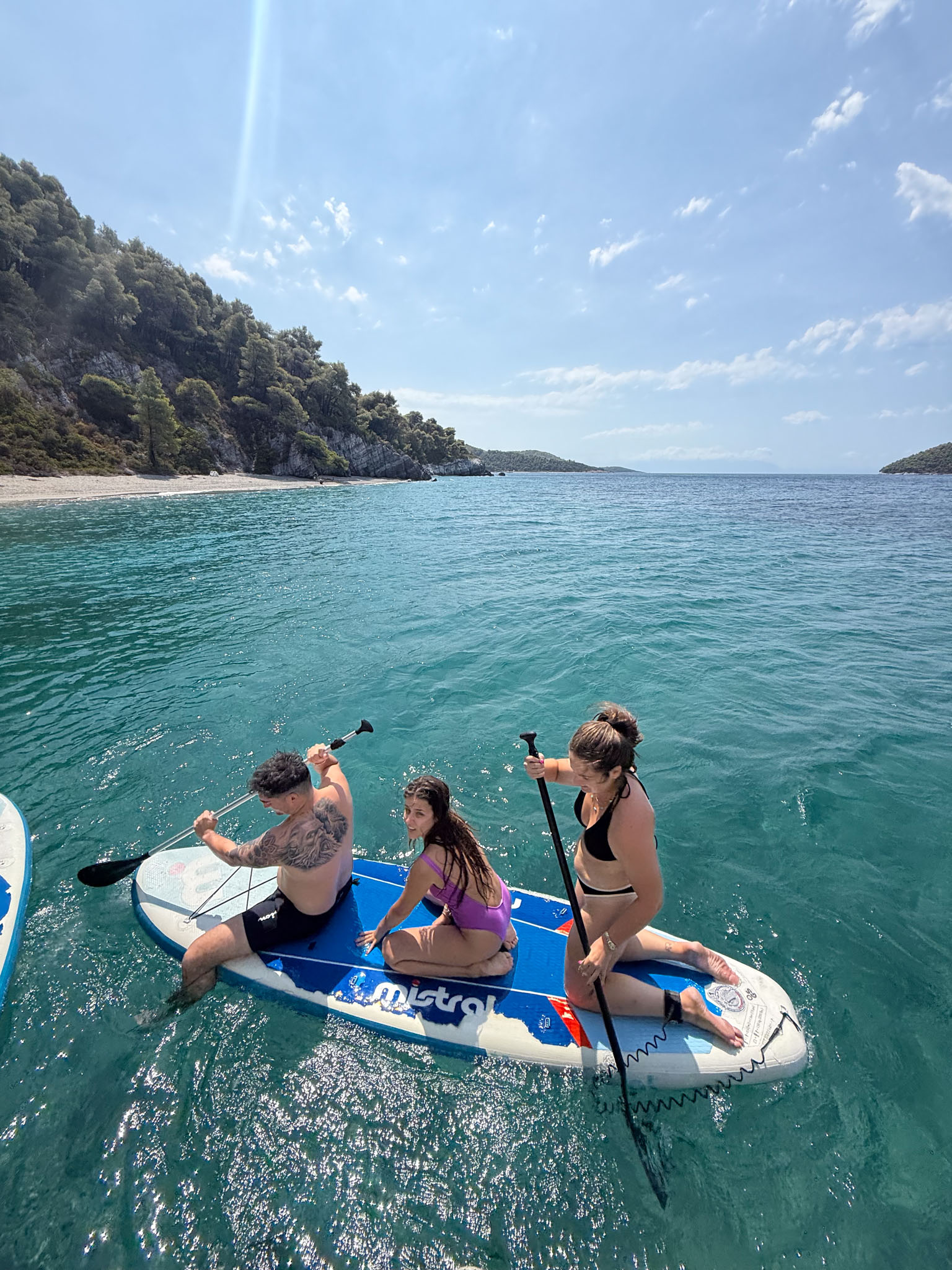 You can feel that they love the ocean and what they are doing. They took us to some amazing beaches to swim and see the wonderful clear waters of the Sprorades. We had lovely conversations and they told us a lot about Skopelos and Alonissos. The boat is very clean and well equipped. We all loved the amazing food Alexandra made for us. It was so much fun going out on the SUP boards and jumping into the water from the boat.
